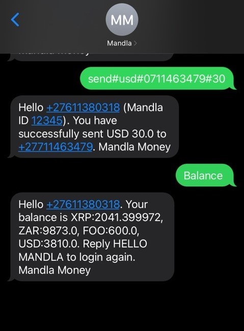 Send Funds: To send XRP or ZAR to another Mandla user in the same country, use the respective commands mentioned in the SMS Wallet Commands section.