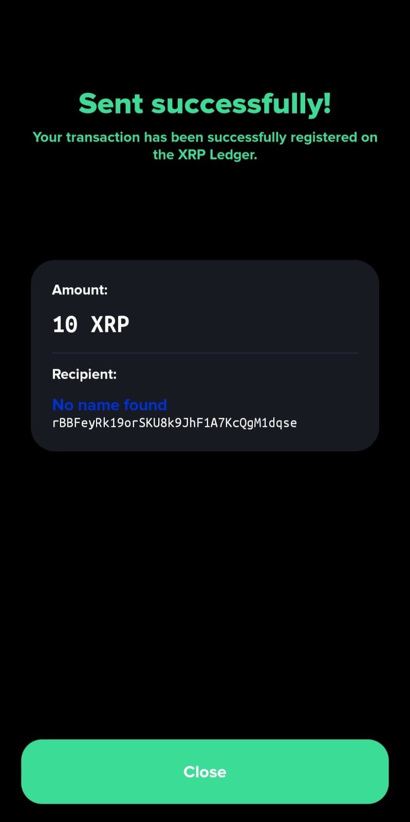 The illustration shows below shows the transfer of funds between two registered Mandla Wallet users on the Testnet version of the XUMM app